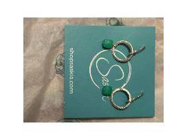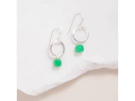 Donated By Saskia Earrings Silver Circle Gem Stones - GREEN