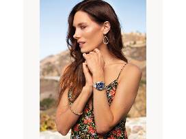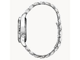 When sporty style meets luxury. This women's timepiece is designed to be versatile yet elevated and features a silver-tone stainless steel case and bracelet with a blue metal 3-hand dial with 11 diamond accents and a sapphire crystal, date function and a deployment clasp with push buttons for easy accessibility. Water resistant to 100 meters and sustainably powered by light with Eco-Drive and never needs a battery.