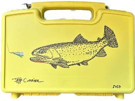 Beautiful artwork by Jeff Courier on a Cliff Bugger Beast Fly Box. Includes 6 Clouser flies tied by Jay Buchner!
