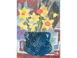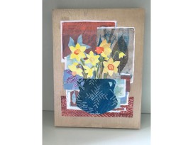 112-in by 16-in mixed media collage of daffodils by artist Justone Ickes of Torrington, Connecticut. justineickes.com/art