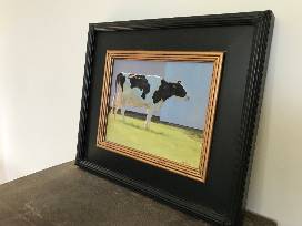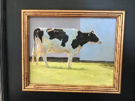 Framed oil painting of a beloved cow from Arethusa Farm in Litchfield County. By Bridget Grady. 14-in x 16-in.