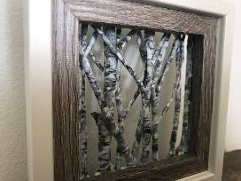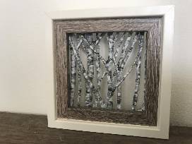 4-in by 4-in framed petite trees made of paper by New Milford artist Robin Sherwood-Armor.