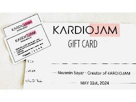 Includes a gift certificate and 2 separate gift cards for 2 friends to take 5 KARDIOJAM classes together.