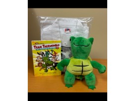 1Your little one will be all ready for martial arts training with this size 00 uniform (fits most children 3' 8" to 4') little turtle stuffed animal, and children's book from the Team Taekwondo Series.