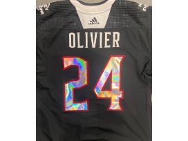Jersey will be worn during pregame warmups on Hockey Is For Everyone Night (February 10, 2023) and autographed by #24 Mathieu Olivier.