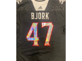 Jersey will be worn during pregame warmups on Hockey Is For Everyone Night (February 10, 2023) and autographed by #47 Marcus Bjork.
