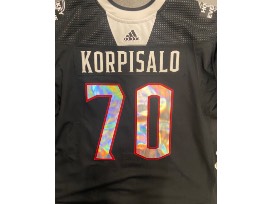 Jersey will be worn during pregame warmups on Hockey Is For Everyone Night (February 10, 2023) and autographed by #70 Joonas Korpisalo.