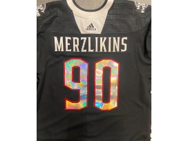 Jersey will be worn during pregame warmups on Hockey Is For Everyone Night (February 10, 2023) and autographed by #90 Elvis Merzlikins.