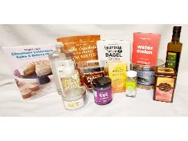Trader Joe's has filled one of their reusable bags with some of their most popular items. A little sweet and a little savory. Dark Chocolate Peanut Butter Cups, Hot Coco, Mango Tea, Everything But the Bagel Crackers, Chocolate Covered Pretzels, Olive Oil, Dish Soap, a candle and more!