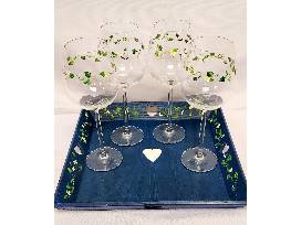 Have some friends over for wine and dessert! This hand painted tray comes with 4 dishwasher safe hand painted wine glasses.