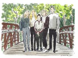 Claire Ward is a Twin Cities based artist specializing in portraits and live event illustration. You will receive a 9 x 12" watercolor portrait using a photo reference of the bidder's choosing. The bidder may include any number of figures (people) /pets in the portrait, and may include a background if desired. The portrait will be created in the artist's signature "minimal detail" style, a whimsical aesthetic with simplified details.