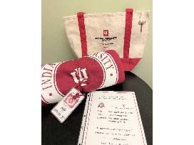 Gift basket includes two seats and one parking pass to the IU vs Ohio State Football game on Saturday, September 2, 2023 in Bloomington, IN. Tickets will be available in August. Blanket and tote bag also included.