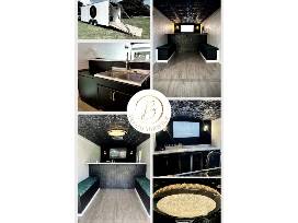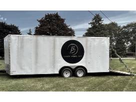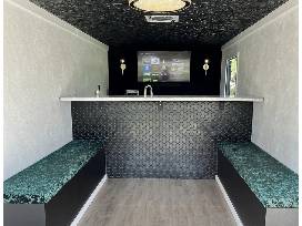 - Fully enclosed 20ft Mobile Bar with running water, one tap kegerator, two glass beverage fridges and chest freezer.