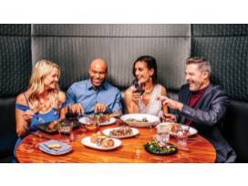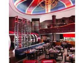 Enjoy the chic, swinging London atmosphere between bites of caviar and decadent roasted Beef Wellington. Featuring a towering ceiling splashed with the Union Jack flag, the modern steakhouse includes a bar, lounge and two-story dining area, with a chef's table and private dining rooms also available.