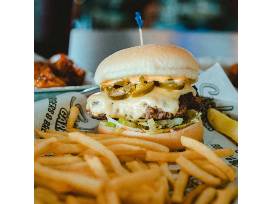 Sickies Garage Burgers & Brews is a family-friendly garage-themed restaurant and bar known nationally for its robust and innovative menu featuring over-the-top burgers and a monster list of delicious brews. Surrounded by décor from classic cars, trucks, and motorcycles, diners always have something fun to check out while enjoying the extensive menu. The menu features items like the Twin Cam (burger topped with peppered bacon and nacho cheese, dialed in between two grilled cheese sandwiches for buns!), the Glazed Doughnut Burger (with a glazed doughnut as a bun!), regular and boneless wings with 25 different sauces; delicious shareable appetizers; specialty Limited Time Only items throughout the year; hand-spun boozy and non-alcoholic shakes and malts; and a revved-up bar menu.