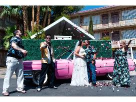 The Viva Las Vegas Wedding Chapel has been a mainstay on the Las Vegas Strip for more than 20 years. Specializing in themed weddings with grand, theatrical productions. It is the only chapel in Las Vegas where an Elvis can literally drive the couple into the chapel in his famous pink Cadillac. Theatrical details like smoke and fog fill the air, and a variety of officiant options from the Grim Reaper to Darth Vader onto a full-scale production of Rocky Horror Picture Show turn a couple's special day into a wedding for the record booksBeyond that, all couples married or renewing their vows at the chapel will get their name in lights following their ceremony on Viva's marquee sign right on Las Vegas Boulevard. For more information, visit FunVegasWeddings.com or connect socially at @VivaLasVegasWeddings.