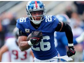 Jersey signed by NY Giants running back, Saquon Barkley.