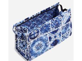 Package Includes: One Weekender Travel Bag and One Trapeze Cosmetic Bag in Island Tile Blue Pattern.