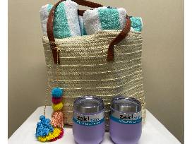 Water Play Center for Kids, Beach Bag, 4 Cabana Beach Towels, 2 Stemless Wine Tumblers, Bubble Wand with Bubbles and Assorted Beach Toys