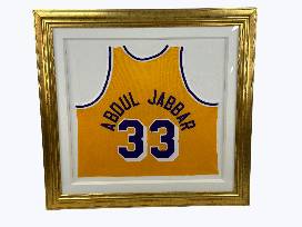 This would be a great addition to your sports collection. This framed, genuine jersey is signed in black ink on the number by Kareem Abdul-Jabbar.