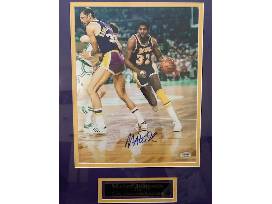 What an addition to any sports fan collection! This is an autographed Magic Johnson framed 18" x 24" print. Includes certificate of authenticity. Five-time NBA Champion Earvin "Magic" Johnson Jr. is often regarded as the greatest point guard of all time. Johnson played 13 seasons in the National Basketball Association most notably with the Los Angeles Lakers from 1979-1991 and in 1996. Includes certificate of authenticity.
