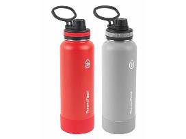 You also get a set of two 40 oz flasks (red and grey) that come with easy-carry loop handles and are made of double-wall vacuum insulated 18/8 food grade stainless steel.