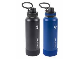 You also get a set of two 40 oz flasks (black and blue) that come with easy-carry loop handles and are made of double-wall vacuum insulated stainless steel. And Banana Boat Sport Ultra Performance SPF 50 sunscreen pack of two 8oz Ultra spray cans and one 8oz lotion. Plus a 4 lb package of Kirkland Signature Trail Mix!