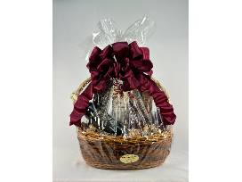 This beautiful gift basket includes Galleano wines and goodies including a bottle of Rosso di Sera red wine, a bottle of Notte Bianca white blend, two Galleano Winery glasses, old Wisconsin premium summer sausage, ground mustard and assorted crackers, cheeses and chocolates.