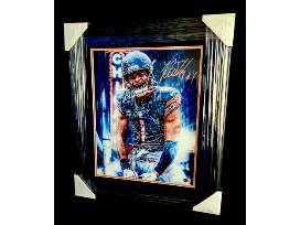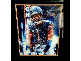 A large "signed" colorized 16x20 framed "Portrait" photo of Justin Fields with hologram & QR code authenticity.