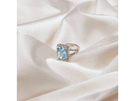Bold yet timeless, this exquisite cocktail ring is a head-turner and makes the perfect travel accessory! Beautifully designed in California and finely crafted in solid 925 sterling silver with world's most desirable simulated diamonds and aquamarine ever created, in a special ice cut shape, for infinite brilliance! Hypoallergenic. Size 7 fits most. Wear it on several fingers. Outstanding packaging for gifting or to hold your keepsakes. Created exclusively for the philanthropic community!