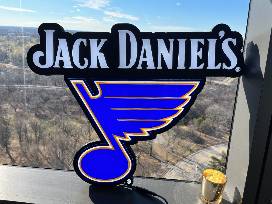 Bid for your chance to win this Yeti Cooler and a light up Jack Daniels & St. Louis Blues branded LED sign!
