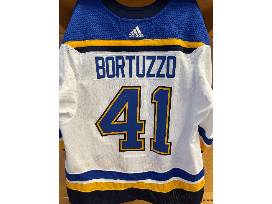 Bid now for your chance to win this autographed Robert Bortuzzo jersey from the 2021 preseason. This jersey features the "A" on the front chest, as he wore it during the preseason. This jersey was autographed at an official Blues team signing during the 2021-22 season.