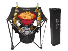 - All-in-One Tailgating Table - Collapsible Folding Camping Table with Insulated Cooler, Mesh Food Basket and Travel Bag