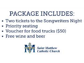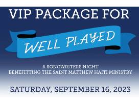 VIP Package for a songwriters night at St. Matthew Catholic Church. Benefitting the St. Matthew Haiti Ministry.