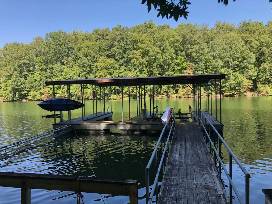 Hickory Hideaway is a beautiful 3-bedroom 3 bath home situated in a quiet cove. Enjoy the scenic views out the screened in porch of the Tennessee park land across the cove. The shoreline deck and private dock is easily accessible by a stairway. With room for family or friends, this home offers a private dock on the lake for all your water sports activities, only minutes by land or water from Tim's Ford Marina and Tim's Ford State Park and Jack Nicholas' designed Bear Trace golf course. We are just a short drive to either Winchester or Lynchburg. You can skip going to the marina to rent a boat. This auction item includes a stay for 5 days, 4 nights, and the use of the private 20 ft pontoon boat. You will have access to 10+ life jackets of many sizes, inter-tubes, water skis/knee boards, and 3 kayaks (2 single 1 double) and a paddle board.