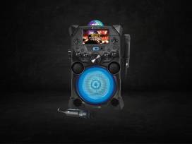 Singing Machine Fiesta Voice Portable Karaoke System Included in the box: -Fiesta Voice HD Karaoke System Model SDL9040 -1 wired Mic-Remote control -1 wired microphone -1 8GB Singing Machine Flash Drive -AC adapter Features: -6 Fun Voice-changing Effects -Plays Colorful Hi-Def Karaoke Music Videos from USB -Built-in Long Lasting Rechargeable Battery -Bluetooth for Wireless Digital Audio Streaming
