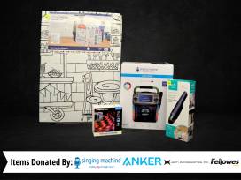Donated By Singing Machine, Anker, Jem Accessories, Fellowes Office