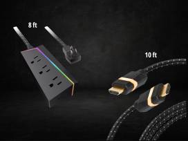 - Titan 6-Outlet Grounded Extension Cord with Multi-Color LED, 1080J, 8ft Braided Cord