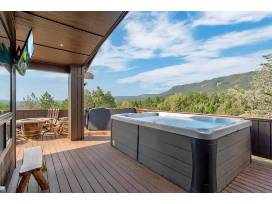 *Strawberry Mountain views, spacious deck, cushioned seating, private hot tub, fire pit, 2 outdoor tv's