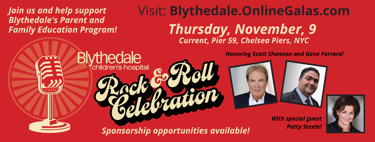 This year, we are proud to recognize our honorees, Scott Shannon, renowned broadcaster and radio legend, and Gene Ferrara, owner of JMA Consultants and longtime Blythedale supporter. With Special Guest, Patty Steele! We look forward to an exciting evening honoring these great friends and hope you will join us for the festivities. Proceeds from this event will support Blythedale's Parent and Family Education Program.
