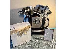 Large hand tote with matching purse, candle, hand soap, decorative sign, Lalicious body scrub box & velour body melt.