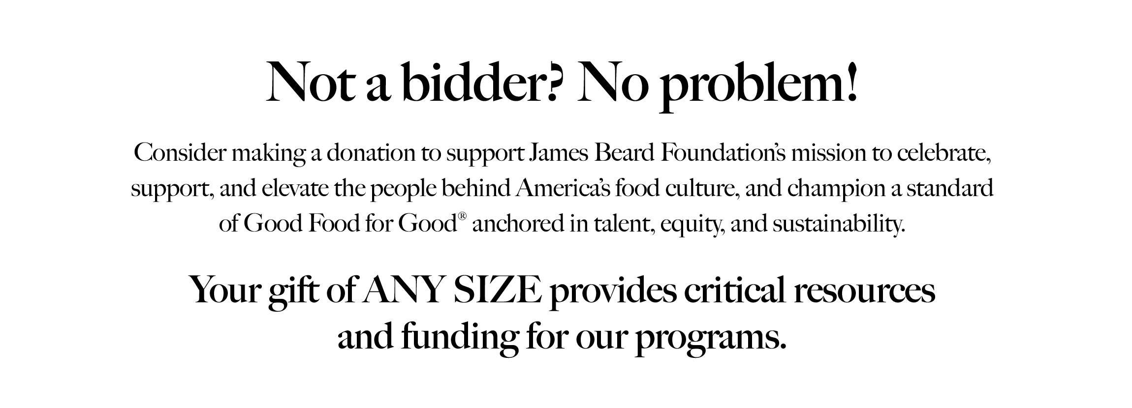 The James Beard FoundationFor more information on our Mission and Programs, please visit our website.