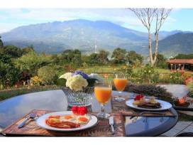 Los Establos Boutique Inn, winner of TripAdvisor's Travelers Choice Award, is a distinctive collection of comfortable suites and accommodations nestled 4,000 feet above sea level. Spread across 16 acres in the midst of a lush coffee plantation, this charming estate offers panoramic views of the Barú Volcano set against Boquete's green mountains, blue waterfalls and rushing rivers. All deluxe accommodations feature marble bathrooms, regional artwork, and private patios, allowing for full enjoyment of the fresh mountain air. Amenities such as flat-screen TV's