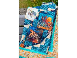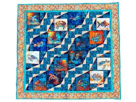This exquisite marine critters-themed quilt is hand-made from fabric selected to truly capture the splendor of the ocean and all its inhabitants! Wrap yourself up in this 58-inch square masterpiece and you'll be transported back to your favorite beach, warmed by summer sand and soothed by the gentle whisper of the surf.