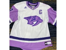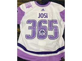 Adidas Hockey Fights Cancer Night jersey autographed by #59 Roman Josi (fight strap included). Worn during pre-game skate November 19. SIZE 56.