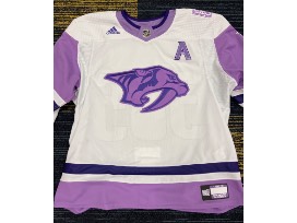 Adidas Hockey Fights Cancer Night jersey autographed by #64 Mikael Granlund (fight strap included). Worn during pre-game skate November 19. SIZE 56.
