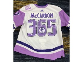 Adidas Hockey Fights Cancer Night jersey autographed by #47 Michael McCarron (fight strap included). Worn during pre-game skate November 19. SIZE 58.