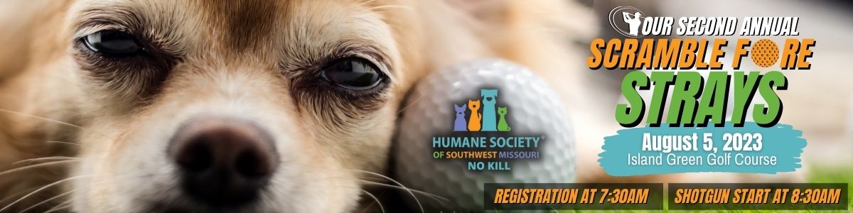 Join us for the second annual golf tournament, Scramble Fore Strays, hosted by and benefiting the Humane Society of Southwest Missouri. Proceeds help aid in operating a No Kill animal shelter, placing animals in suitable homes, offering low-cost veterinarian services, and providing educational programs. We do not receive any funding from the city or state and are not affiliated with any national organizations. This means we solely rely on donations from caring individuals like you! Help us save lives by signing up for a sponsorship or signing up to play today! It's a great opportunity to have fun, showcase your business, and most importantly, help homeless animals in our community.