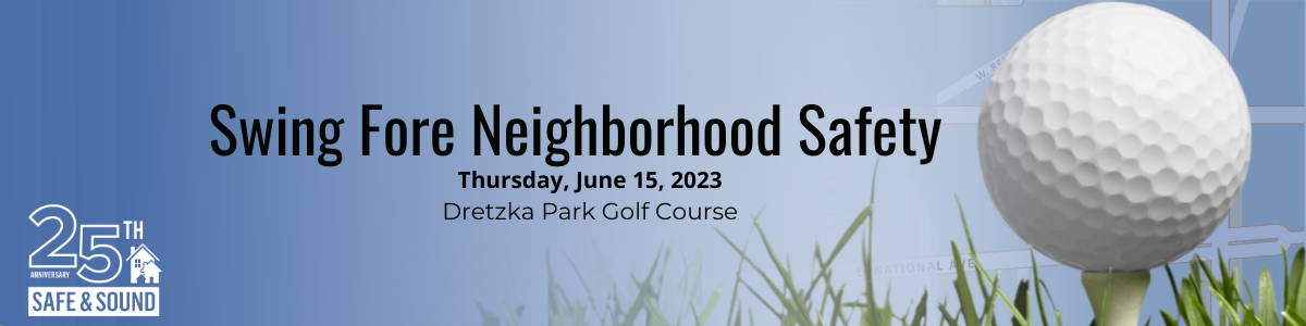 Safe & Sound invites you to join us for our 3rd Annual Swing Fore Neighborhood Safety, on Thursday, June 15, 2023, at Dretzka Park Golf Course. This annual golf outing helps raise funds to continue building safe & empowered neighborhoods for residents and youth. Thank you!