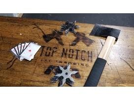 Enjoy 1.5 hours of throwing time with six (5) of your friends. Play games and throw Top Notch Axe Throwing's entire arsenal of axes, ninja stars, and throwing cards.